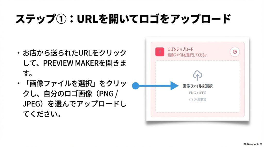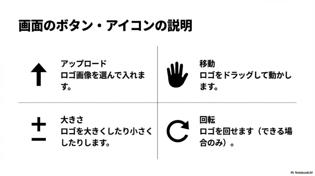 - ロゴ画像をアップロードして配置確認